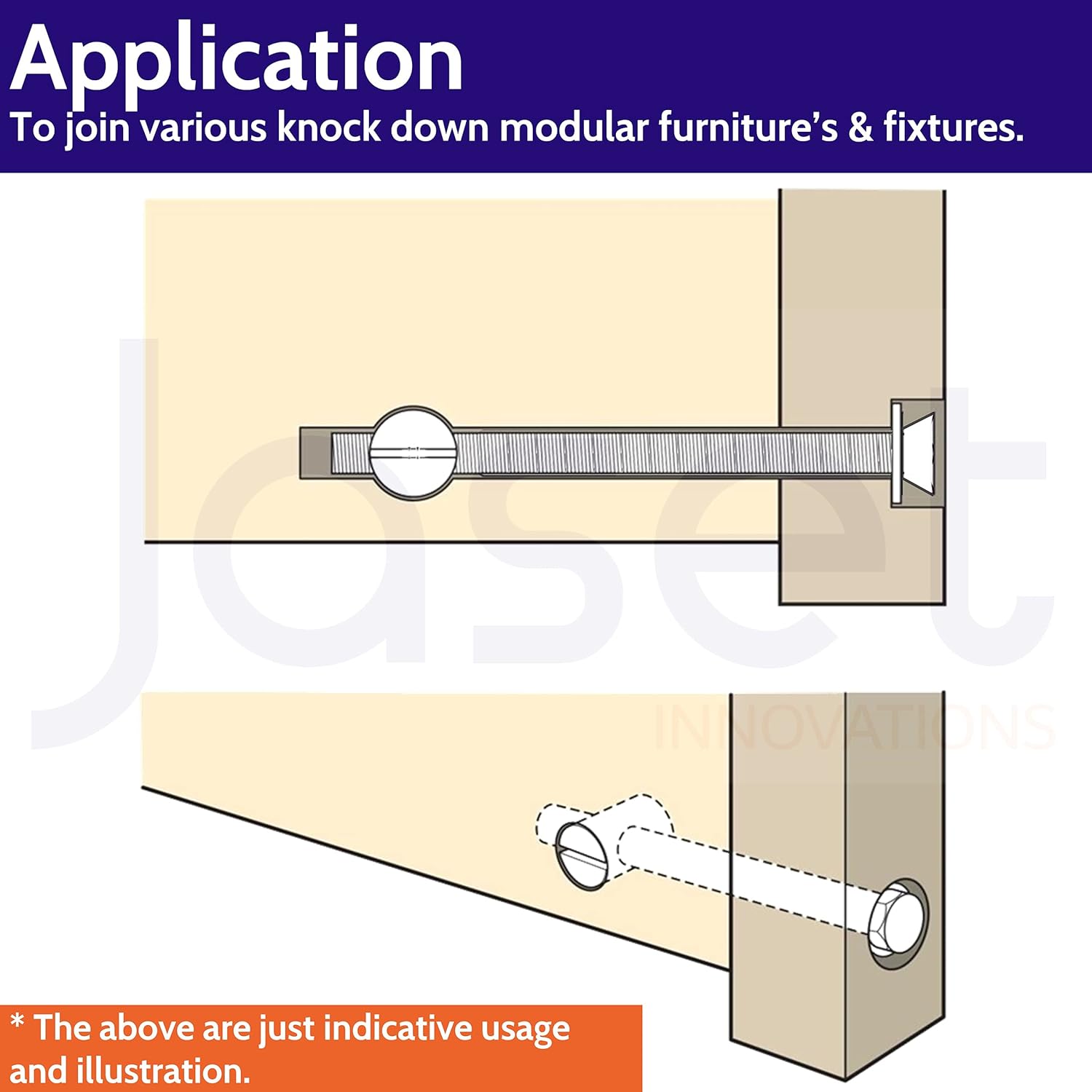 These FULLY THREADED FASTENERS with matching BARREL NUT / DOWEL (13 mm Height) and WASHERS with uniform diameter on the entire length of the screw shaft are used for various DO-IT-YOURSELF (DIY) work like Fixing Wardrobe, Chair, Table, Storage Units, Cupboard, Drawer and many more applications.