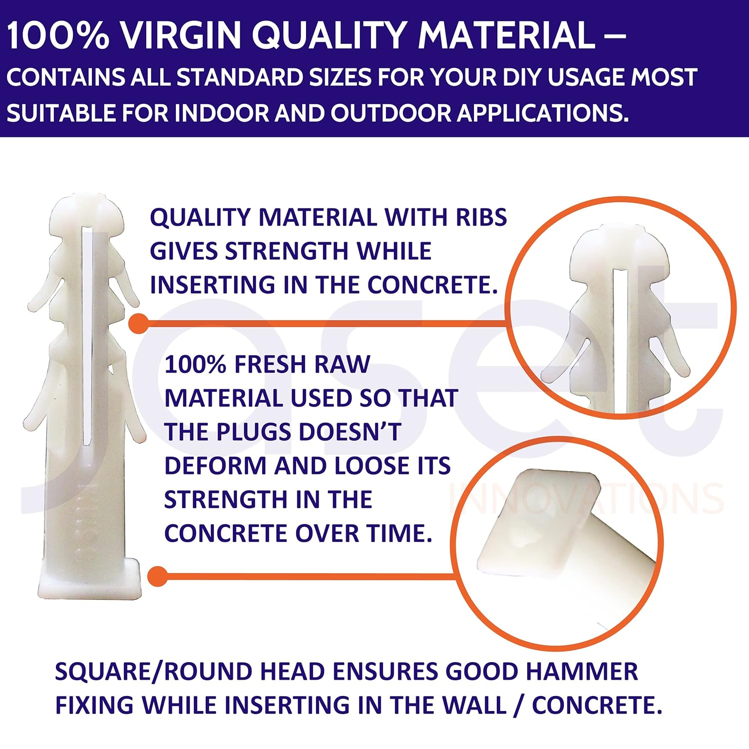 - WALL RAWL PLUGS / GITTI – MADE OF 100% VIRGIN QUALITY MATERIAL: 100% fresh raw material used so that the plugs do not lose its strength in the concrete over time.