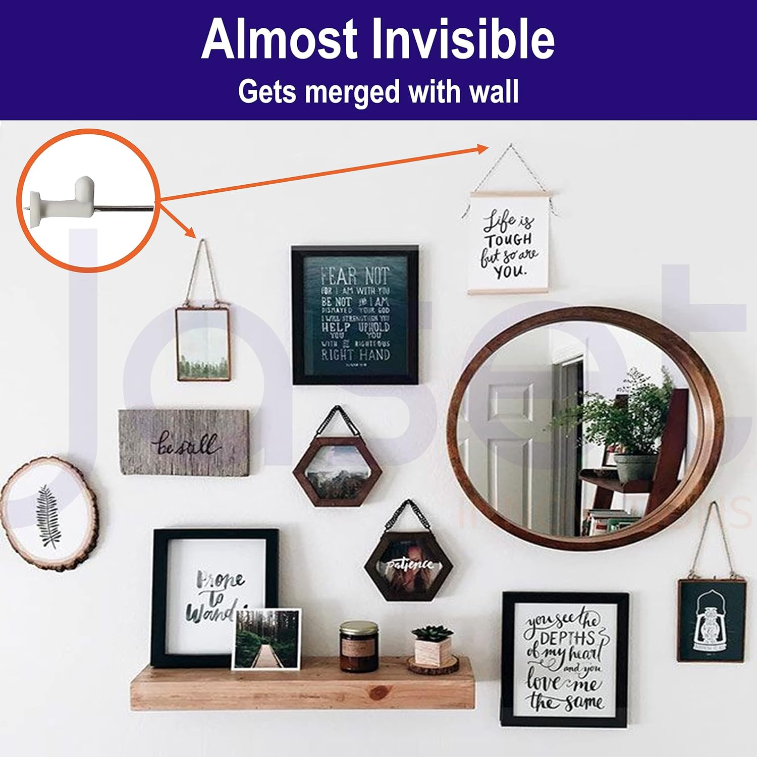 - ALMOST INVISIBLE – Good solution for hanging small to medium size frame with minimal damage to walls. It only has one tiny pin hole like push pin which can be removed with pliers. Easily removable; little or no damage; leaves almost invisible or very tiny marks on wall.